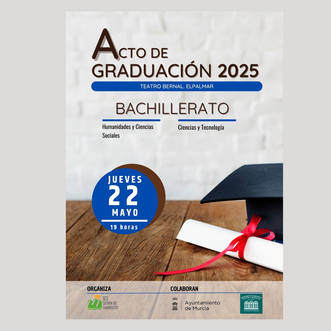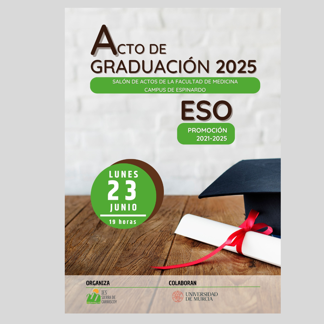 Los actos de Graduación de los alumnos de 4º de ESO y 2º de Bachillerato tendrán lugar el 16 de junio y el 15 de junio, respectivamente.