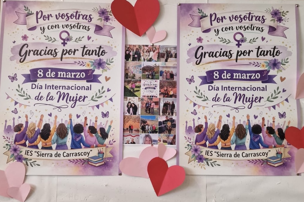 Por un lado, en el vestíbulo del instituto se muestra la exposición fotográfica «Por vosotras y con vosotras». Se trata de una serie de imágenes en las que las trabajadoras del centro, tanto del personal de administración y servicios como docentes, conmemoran esta efeméride. Esta galería de imágenes estará expuesta todo el mes de marzo.